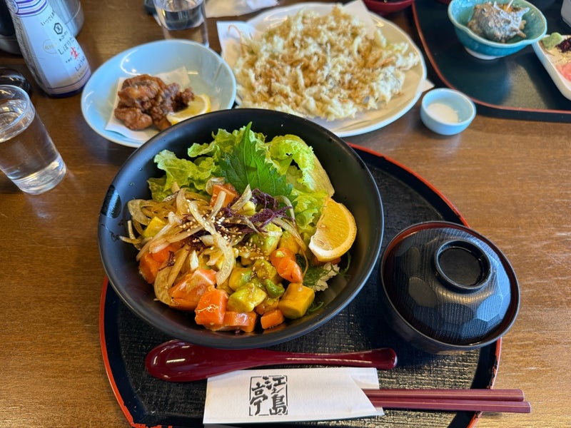 サーモンアボカド丼としらす揚げ🥢